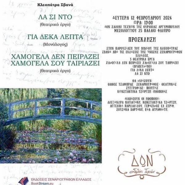 ΠΡΟΣΚΛΗΣΗ στην παρουσίαση του βιβλίου της Κλεοπάτρας Σβανά από τις εκδόσεις της Ένωσης σεναριογράφων Ελλάδος,
