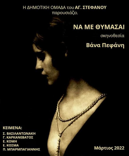 Με αφορμή την Παγκόσμια ημέρα της γυναίκας, Τρίτη 8 Μαρτίου 2022, ηΔΗΜΟΤΙΚΗ ΘΕΑΤΡΙΚΗ ΟΜΑΔΑ ΑΓΙΟΥ ΣΤΕΦΑΝΟΥ ΔΗΜΟΥ ΔΙΟΝΥΣΟΥπαρουσιάζει τη μουσικοθεατρική παράσταση: