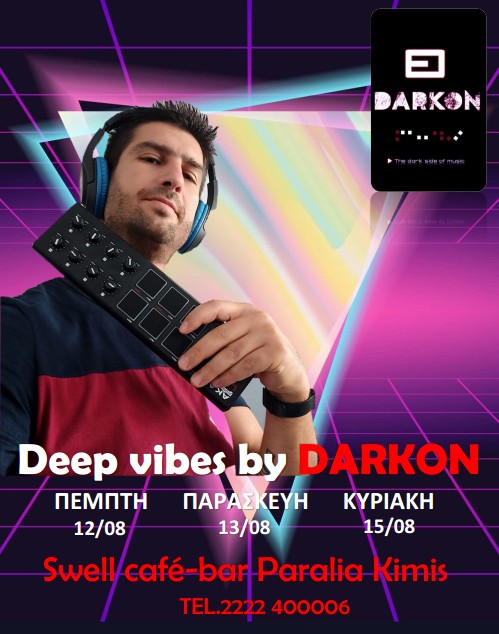 Ο ταλαντούχος μουσικός παραγωγός, ηλεκτρονικής μουσικής, Darkon (Κώστας Νακόπουλος) θα βρίσκεται τη Πέμπτη 12, τη Παρασκευή 13 και την Κυριακή 15 Αυγούστουστα decks του Swell Cafe Bar στην ειδυλλιακή παραλία της Κύμης.
