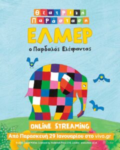 Σας παρουσιάζουμε τη νέα παραγωγή της θεατρικής παράστασης του Έλμερ του Παρδαλού Ελέφαντα, ειδικά για το Online Streaming, γυρισμένο με πολλές κάμερες, τηλεοπτικό φωτισμό, επεξεργασμένο ήχο και ειδικά εφέ!