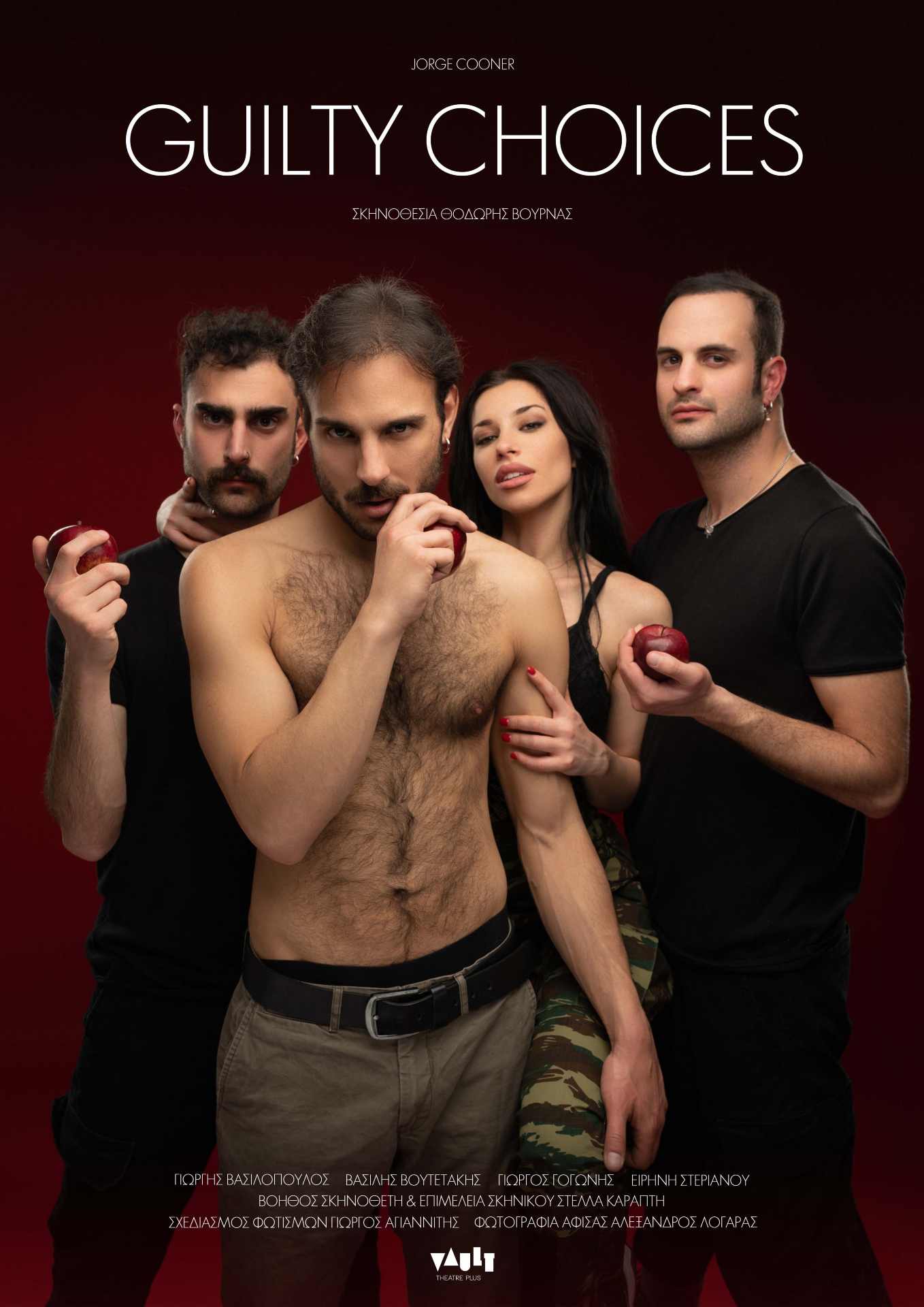 Το έργο  GUILTY CHOICES κάνει πρεμιέρα στις 3 Μαΐου σε σκηνοθεσία Θοδωρή Βουρνά στον πολυχώρο Vault. Mε ένα καστ νέων ηθοποιών σε μια αυστηρά ακατάλληλη παράσταση που μας κλείνει με πολλά ερωτηματικά το μάτι στα ένοχα μυστικά ενός φαινομενικά πολύ ευτυχισμένου ζευγαριού.